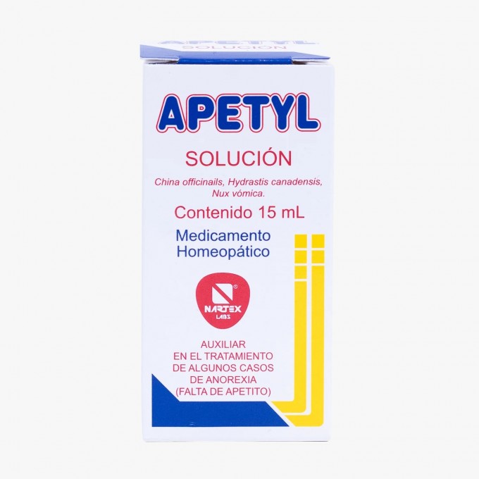 Los componentes naturales de la fórmula de APETYL actúan sobre los órganos digestivos estimulando naturalmente el apetito tanto en niños como en adultos y es además, un auxiliar en el tratamiento de algunos casos de anorexia(faltas de apetito). Asimismo, su fórmula ayuda a disminuir el cansancio, la depresión, irritabilidad y los síntomas derivados de una alimentación deficiente.