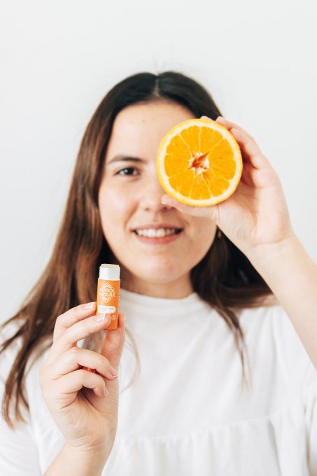 Bálsamo labial de naranja 100% natural y vegano 7 gramos, a base de manteca de karité y aceite de coco que hidrata y deja una sensación de frescura en los labios. ¡Prueba su sabor a naranja completamente natural, te lo vas a querer comer! Hecho con envase sustentable de cartón y reciclable. Todos sus ingredientes son naturales sin colorantes ni saborizantes artificiales.